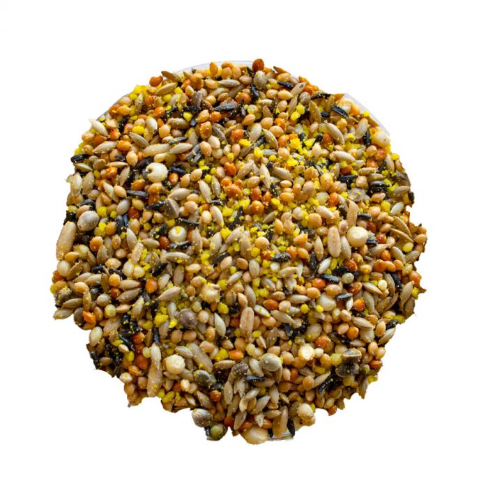 Yellow/red millet, canary seed, niger, yellow egg feed, hemp seed, dari, oats with vitamins