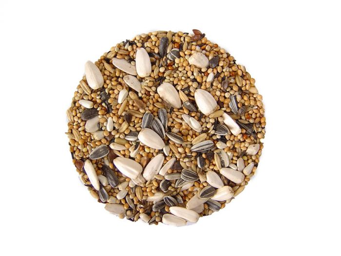 Yellow millet, striped/white sunflower, silver millet, peeled oats, safflower, buckwheat, Japanese millet, paddy rice, hemp seed, niger