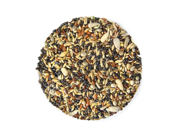 Canary seed, turnip rapes, linseed, peeled oats, hemp seed, peeled sunflower, poppy, niger, wildseed