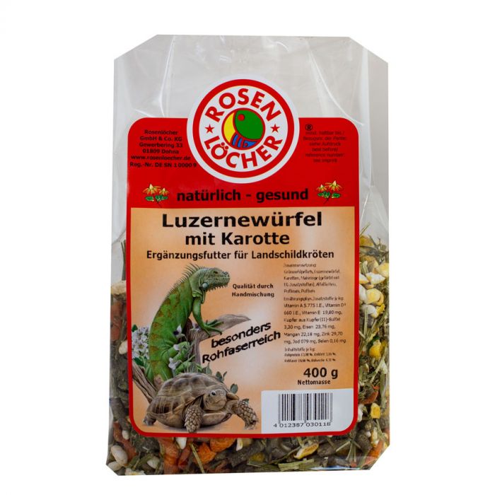 Grünmehlpellets mit Vitaminen, Luzernewürfel,Karotten- scheiben, Ringos natur, Alfalfa Heu, Mais gepufft, Reis gepufft